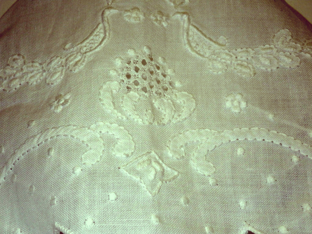 Beautiful, handmade bonnet with matching booties.This is a wonderful memento, that will compliment your baby's Christening outfit.Is designed in a traditional fashion for either boy or girl wear.Imported from London.Embroidery detail is shown in up close image.Booties are adorned with a satin ribbon. Color, pure white. Fits 0- 6 months.
