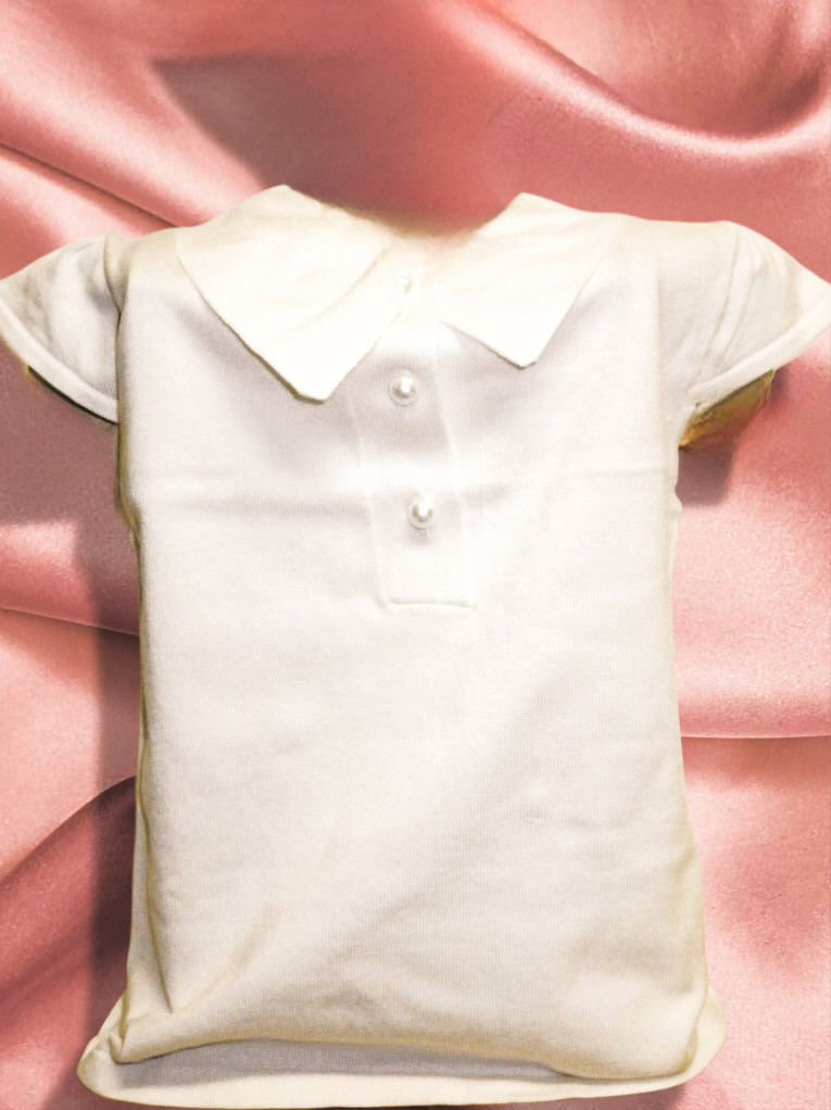 Adorable & fancy, dress up your little princess! Cap sleeve & round collared shirt, is adorned with pearl like buttons.Available only size 2, color ivory. Imported from Spain.